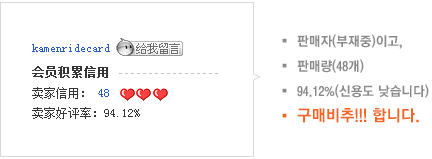5. 가능한 한 신용도 99%이상 다이아몬드정도의 높은 판매자를 선택