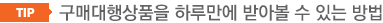 위의  모든 조건을 완벽하게 충족한 경우 당일 저녁 익일택배로 물건이 발송되어 다음날 저녁에 받으실 수 있게 됩니다.